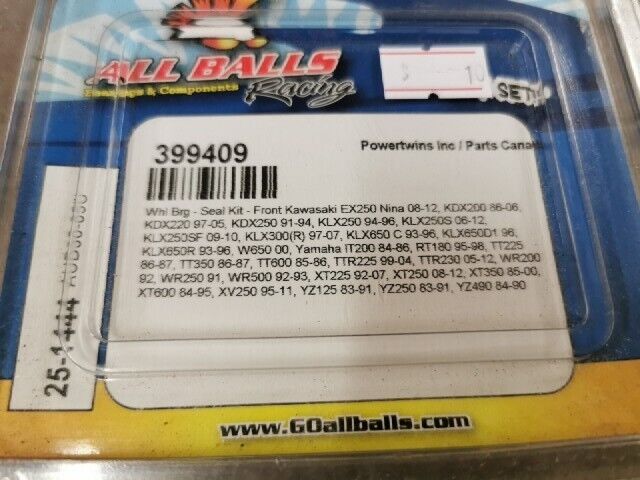 NOS ALL BALLS EX250 KDX200 KDX220 WHEEL BEARING SEAL KIT FRONT 25-1444 J53