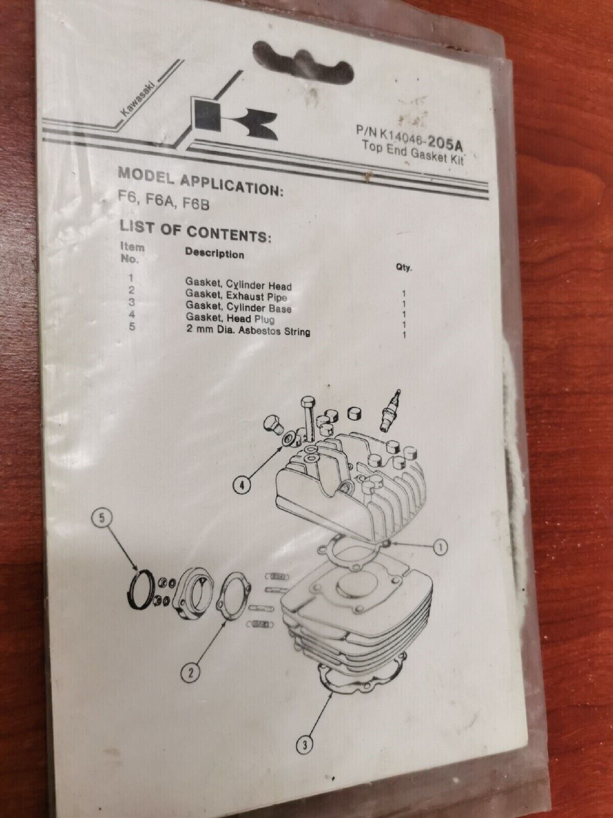 NOS KAWASAKI F6 F6A F6B TOP END GASKET KIT K14046-205A K2